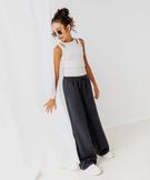 Pantalon large fluide avec taille ajustable fille gris anthracite