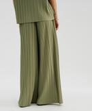 Pantalon large plissé avec taille élastique femme vert