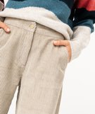 Ce pantalon en velours s’inspire d’une pièce emblématique du dressing des années 70 avec sa taille haute et ses grosses côtes. Un pantalon femme avec ceinture plate qui permet de souligner la taille avec élégance. Il possède deux poches latérales et deux fausses poches raglan au dos. Ce pantalon large sera parfait pour composer un look esprit seventies en association avec un pull ajusté et des boots à talon flare.