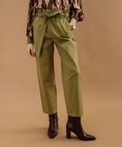 Pantalon mom à taille paper bag élastiquée femme vert