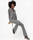 Pantalon patte d'éléphant en maille imprimée femme noir