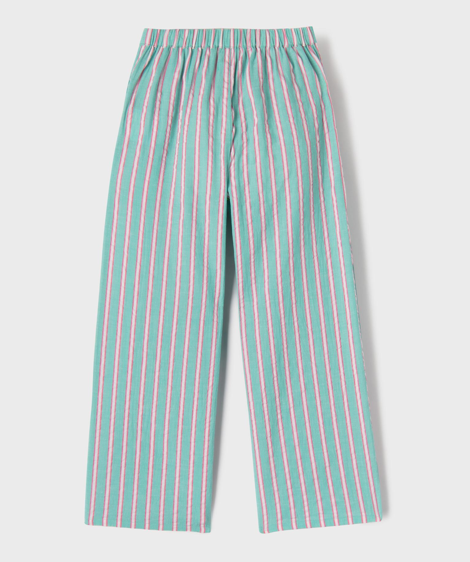Pantalon rayé en coton froissé fille vert