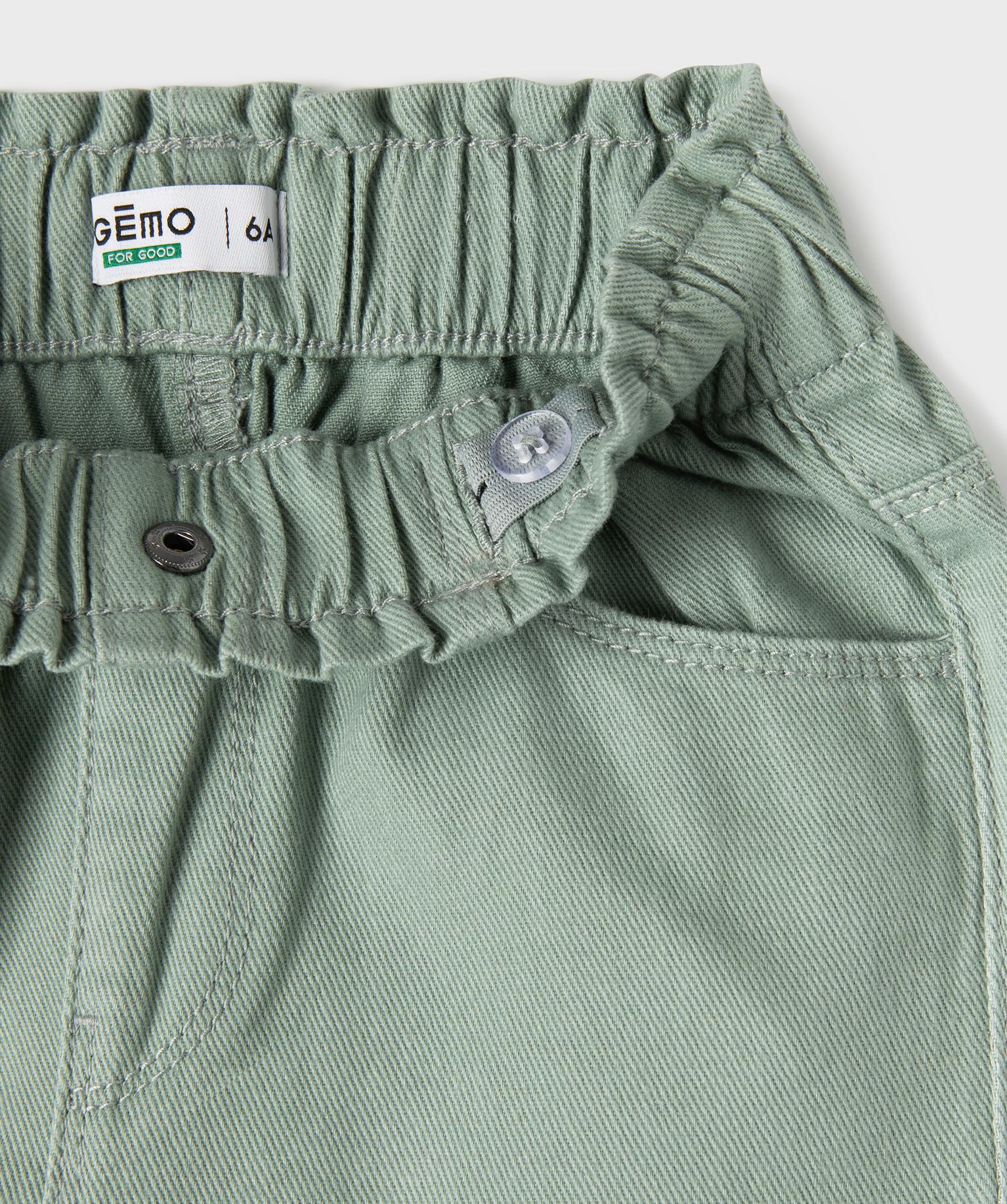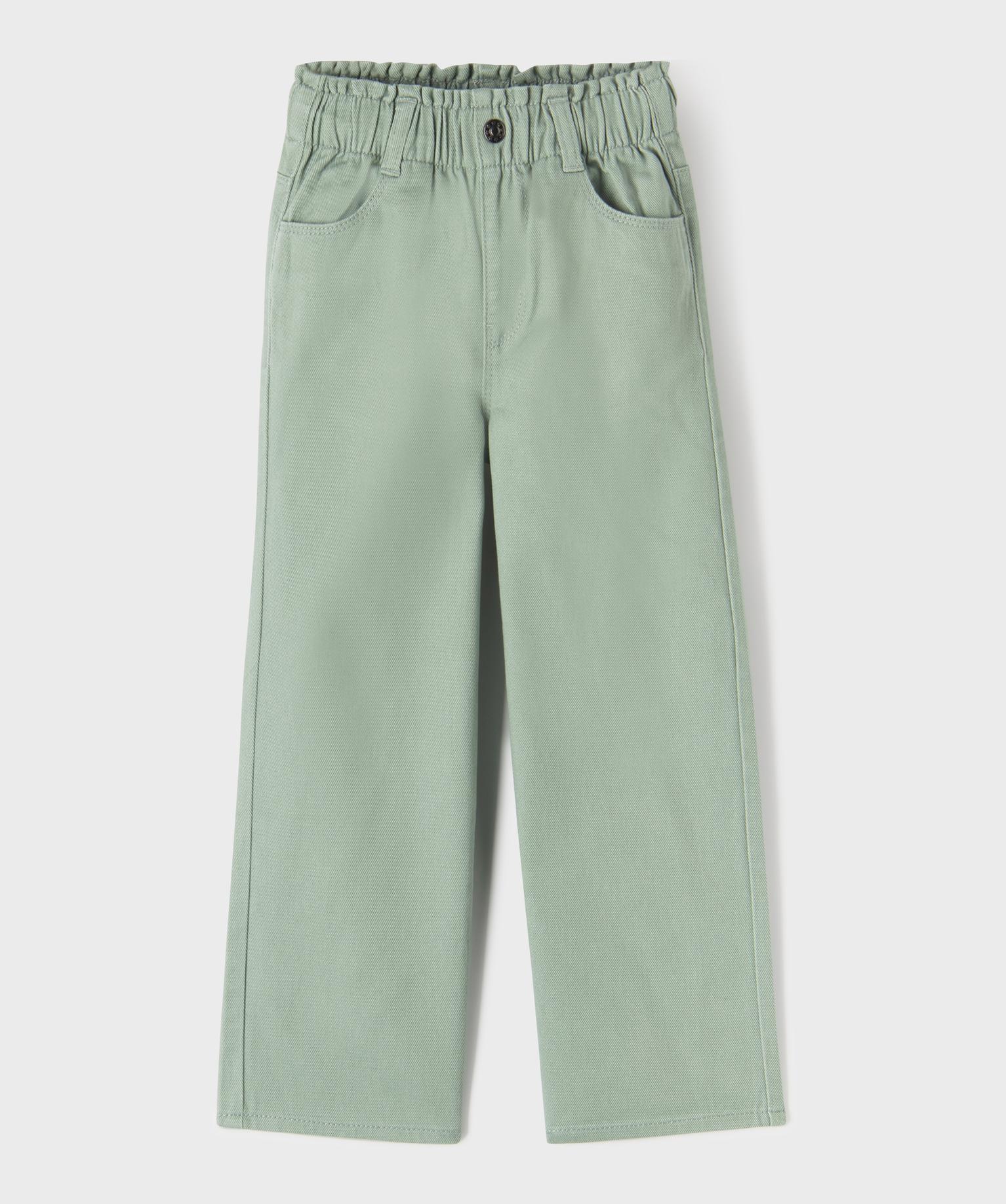 Pantalon straight en toile de coton taille ajustable fille vert clair
