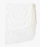 Paréo femme en dentelle ajourée à franges avec liens à nouer blanc chine
