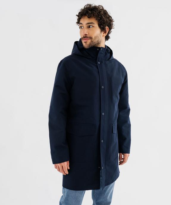 Parka à capuche avec dessus déperlant homme bleu fonce