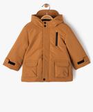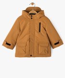 Parka à capuche avec doublure peluche bébé garçon marron vif
