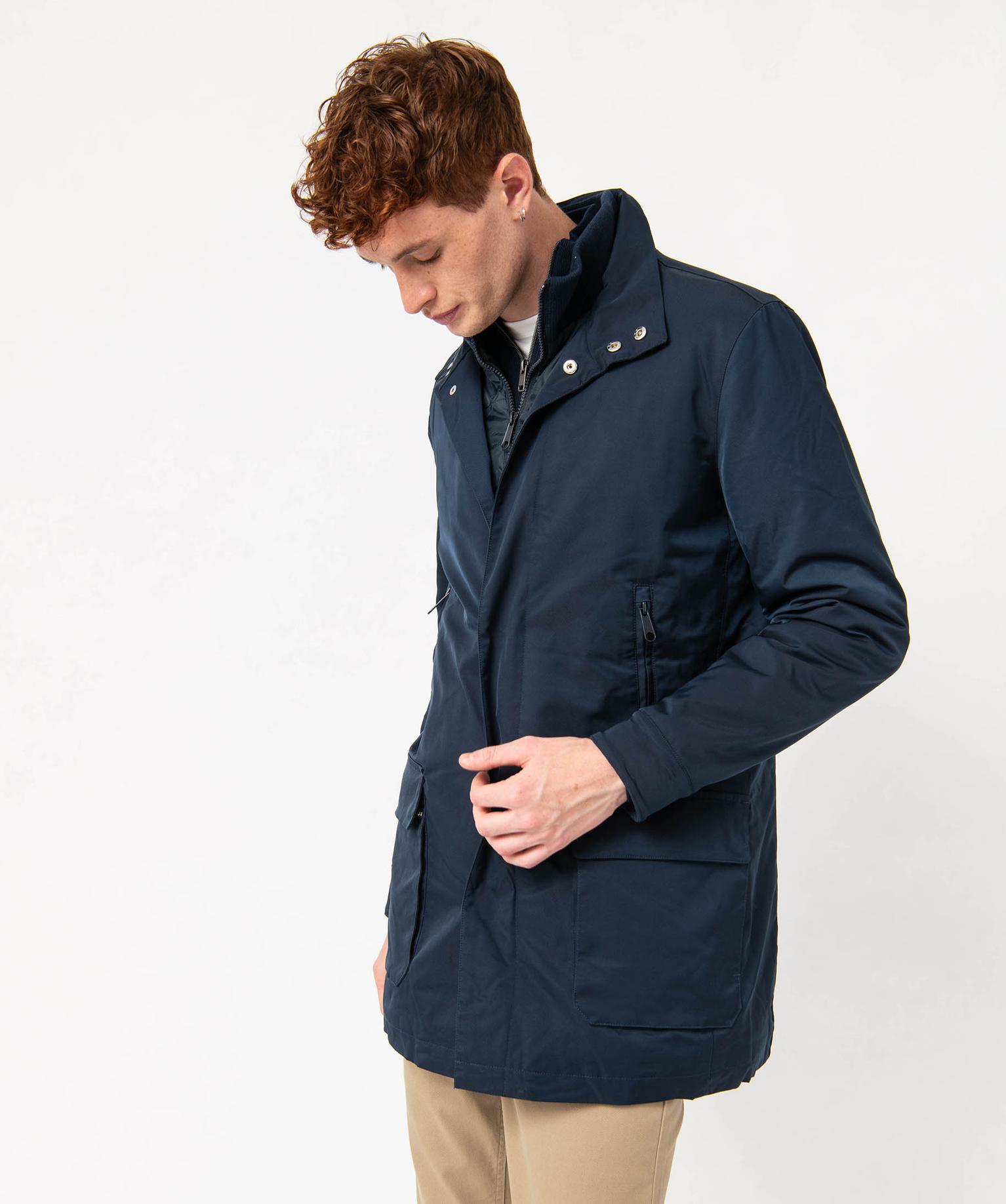 Une fois n'est pas coutume, la parka se présente ici sans capuche. Idéal pour une touche de sophistication supplémentaire tout en restant au chaud. Ses lignes épurées twistées par un double col montant en font un manteau d'hiver adapté à vos tenues casual comme à vos costumes. En dépit de son allure sobre, la parka présente de nombreux détails soignés : une parementure façon doudoune fine avec col côtelée et zip sous une patte pressionnée, des poignets doublés de bord-côte et pressionnés, 2 grandes poches plaquées sous rabat pressionné, que 2 poches repose-main zippées ainsi que 2 poches intérieures, doublure matelassée et finement rembourrée. Coupe droite. Base droite