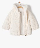 Parka bébé fille en velours côtelé à pois dorés avec écharpe douce beige clair