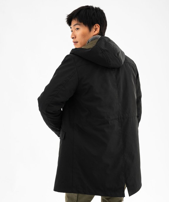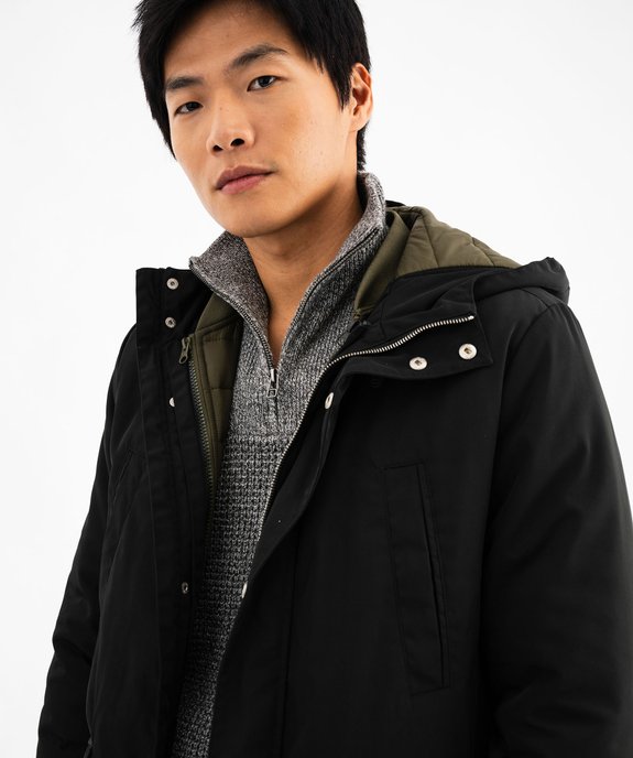 Idéale pour traverser la saison hivernale sans encombre, la parka à capuche pour homme. Ce modèle est confectionné dans une toile déperlante assurant une protection contre la pluie et possède une doublure matelassée amovible. Cette doublure contient un rembourrage en polyester recyclé et se fixe grâce à des zips. Cette parka 3 en 1 se porte avec la doublure pour une protection optimale contre le froid, sans la doublure à l’intersaison ou la doublure seule comme doudoune légère. Manteau avec 2 poches raglan fermées par boutons pression, 2 poches à rabat fermées par bouton pression, fermeture par zip à double curseur sous patte pressionnée. Capuche doublée, ajustable par cordon coulissant. Doublure avec fermeture zippée, 2 poches intérieures et 2 poches extérieures.