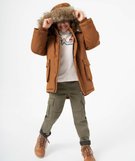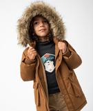 Parka déperlante avec doublure chaude et capuche garçon marron