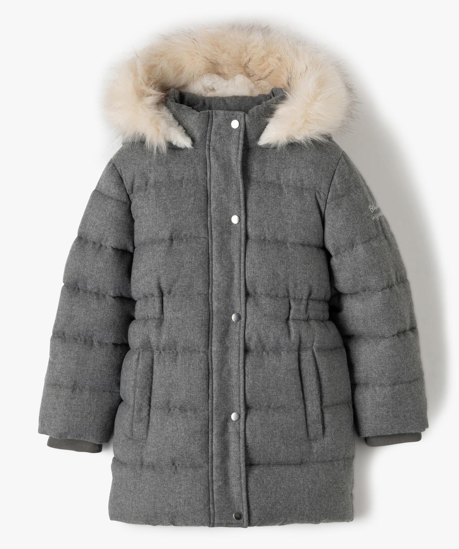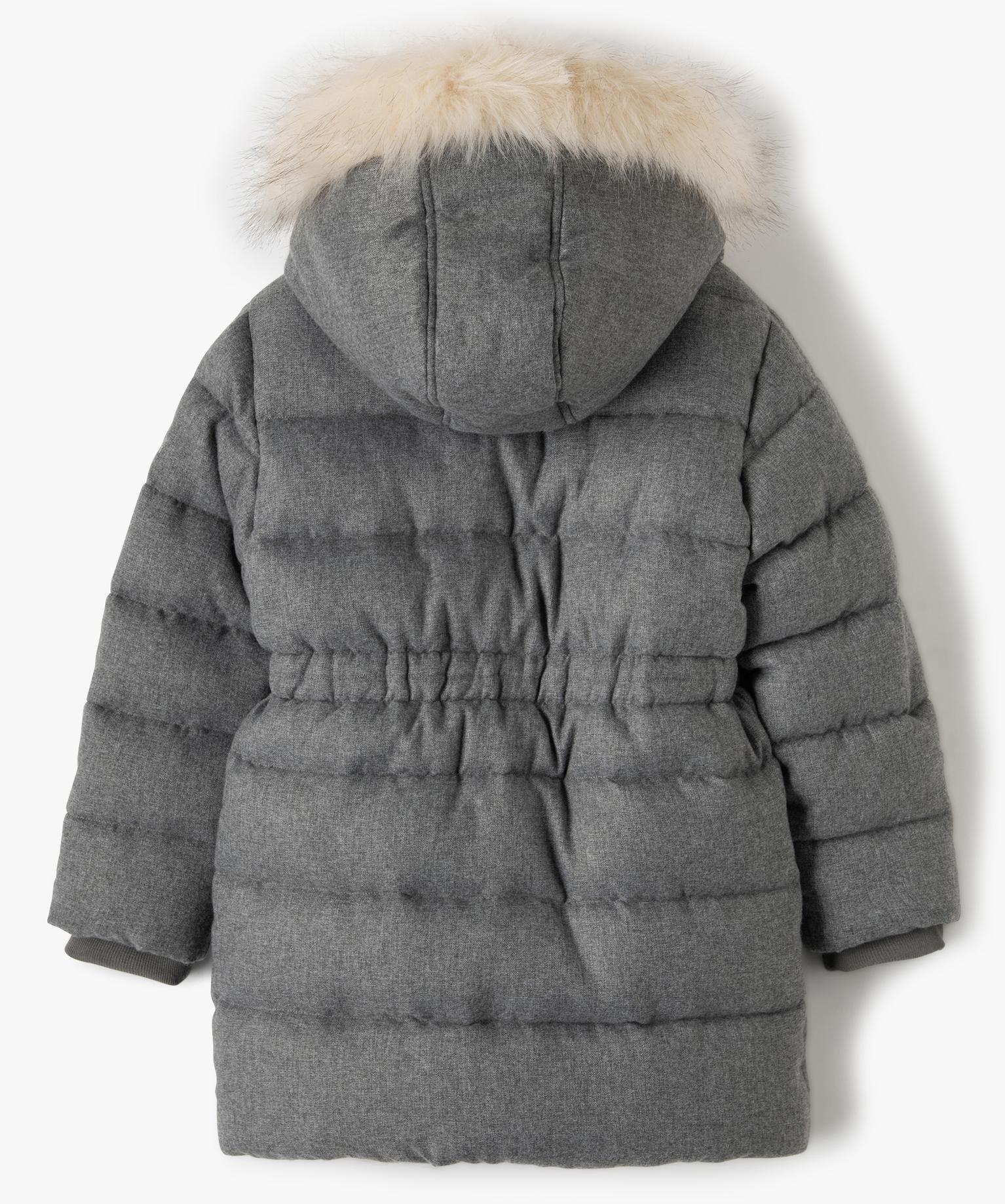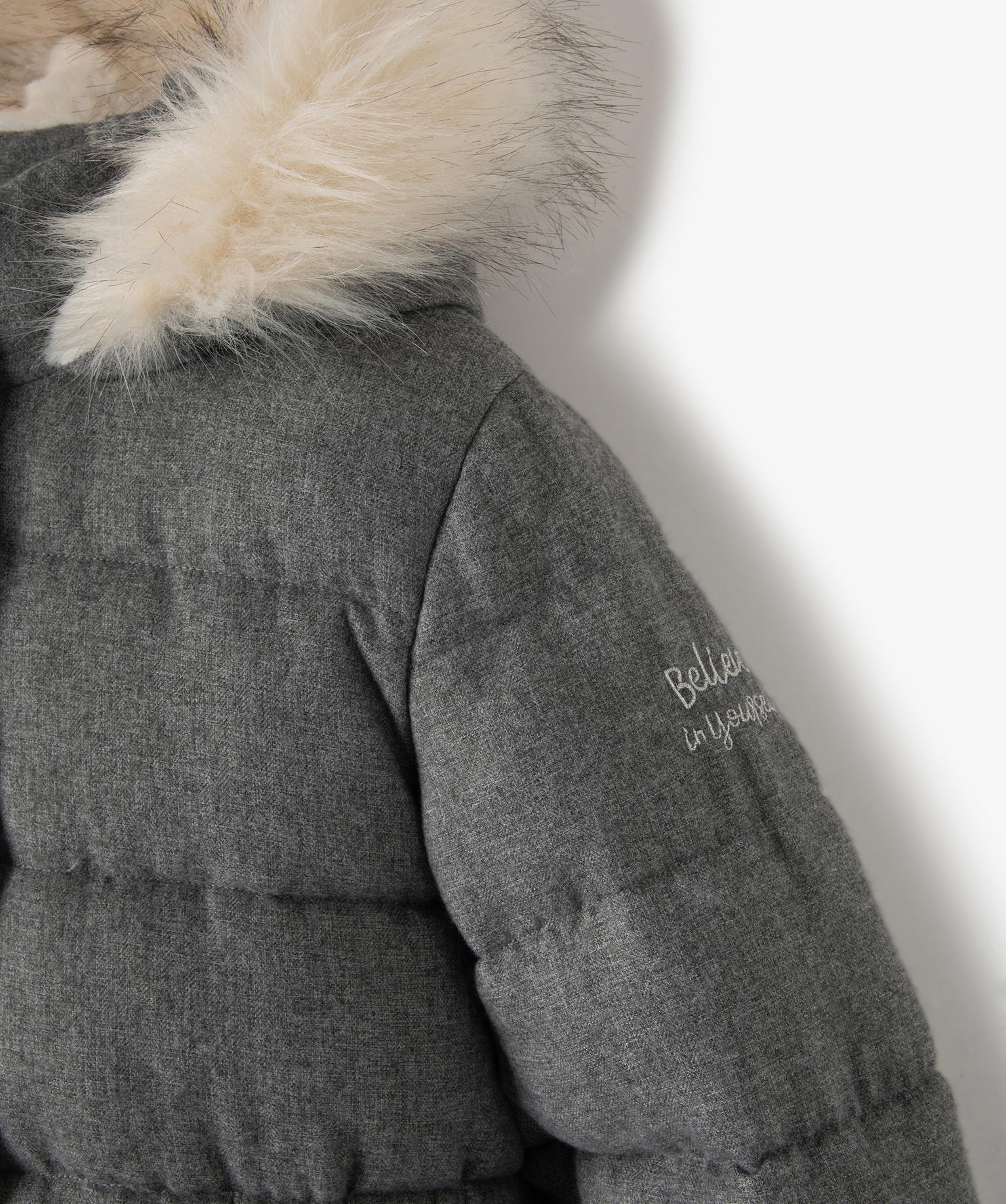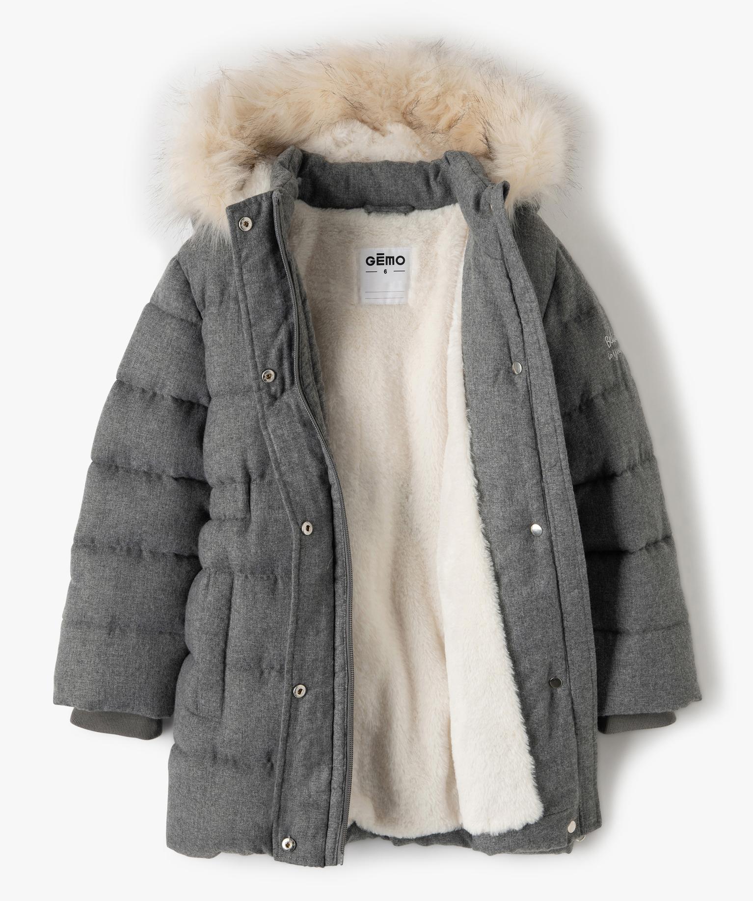 Parka fille avec doublure chaude et capuche fantaisie gris chine