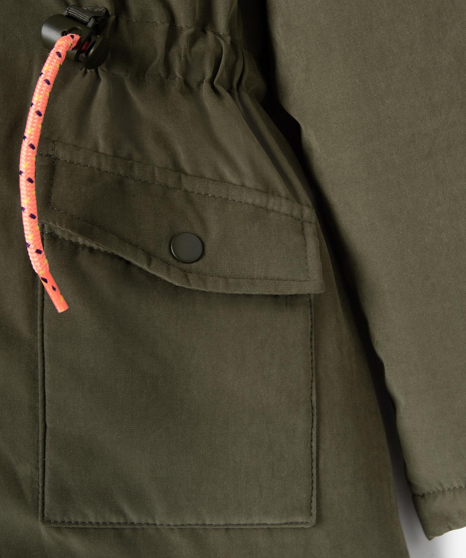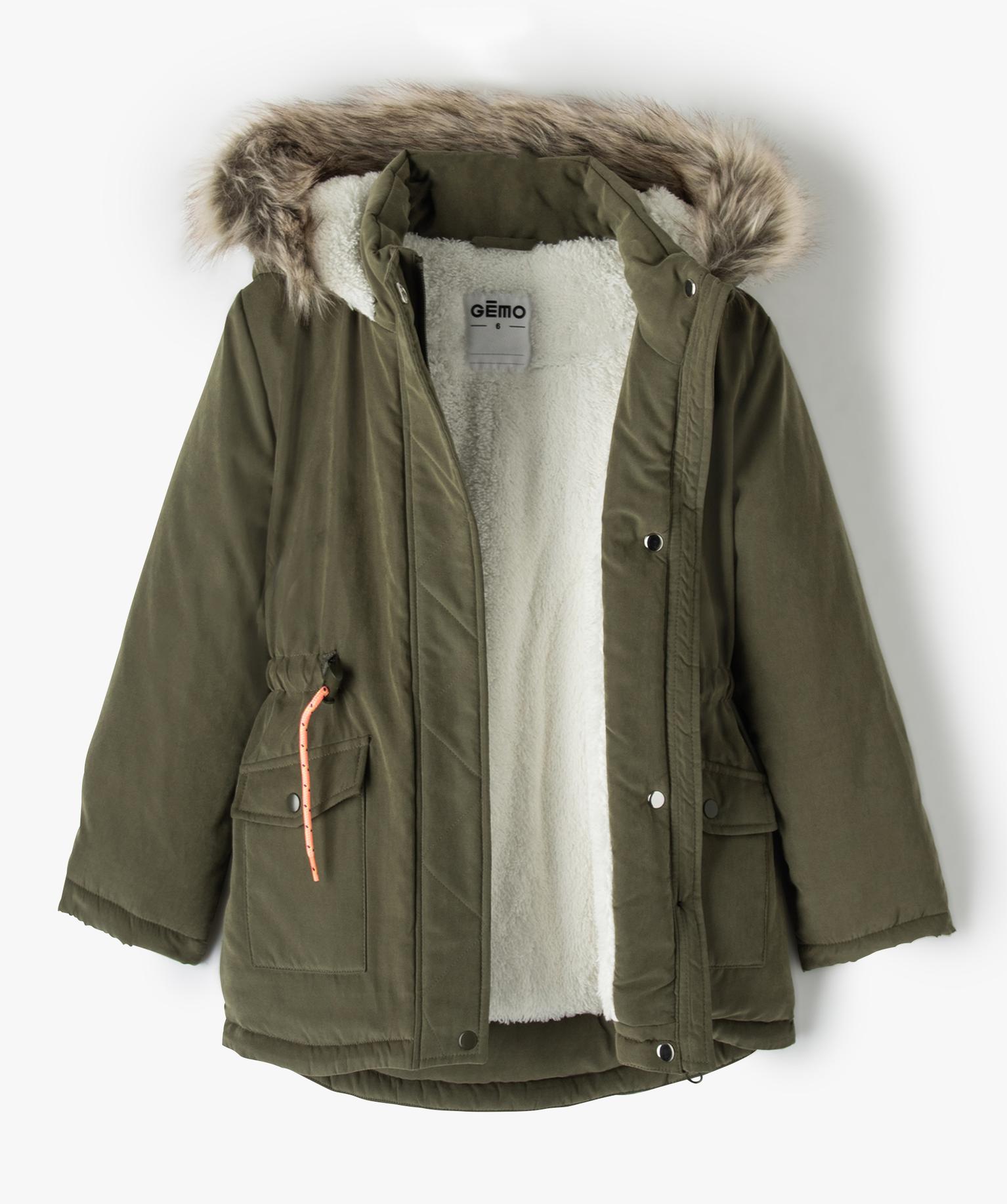Parka fille chaude et déperlante toucher peau de pêche kaki