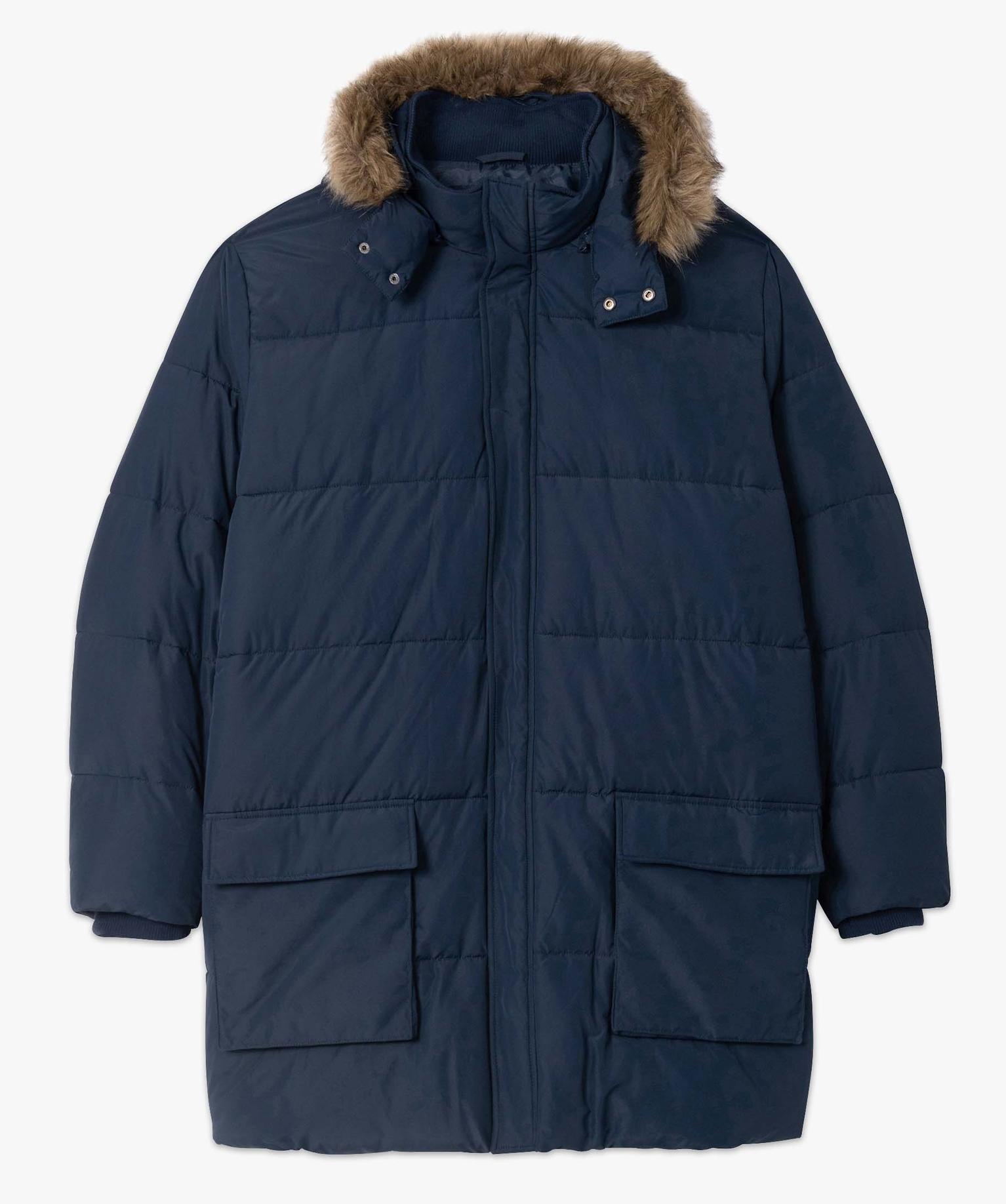 Idéale pour rester à votre aise et stylé en hiver : la parka matelassée à capuche en fourrure imitation ! Cette parka pour homme grande taille (du 4XL au 6XL) vous garantit un maximum de chaleur avec sa double fermeture zippée et pressionnée, ses poignets resserrés par bord-côte, son col montant doublé bord-côte et sa capuche ourlée de fourrure imitation. Pratique, la capuche est équipée d'une patte pressionnée et peut être facilement ôtée grâce à un zip sur le col. La parka à capuche amovible possède deux poches à rabat pressionné, 1 poche intérieure pressionnée et 1 poche intérieure à scratch. Rembourrage chaud. Zip avec protection sous le menton.