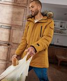 Parka homme matelassée à capuche avec bord fantaisie amovible marron vif