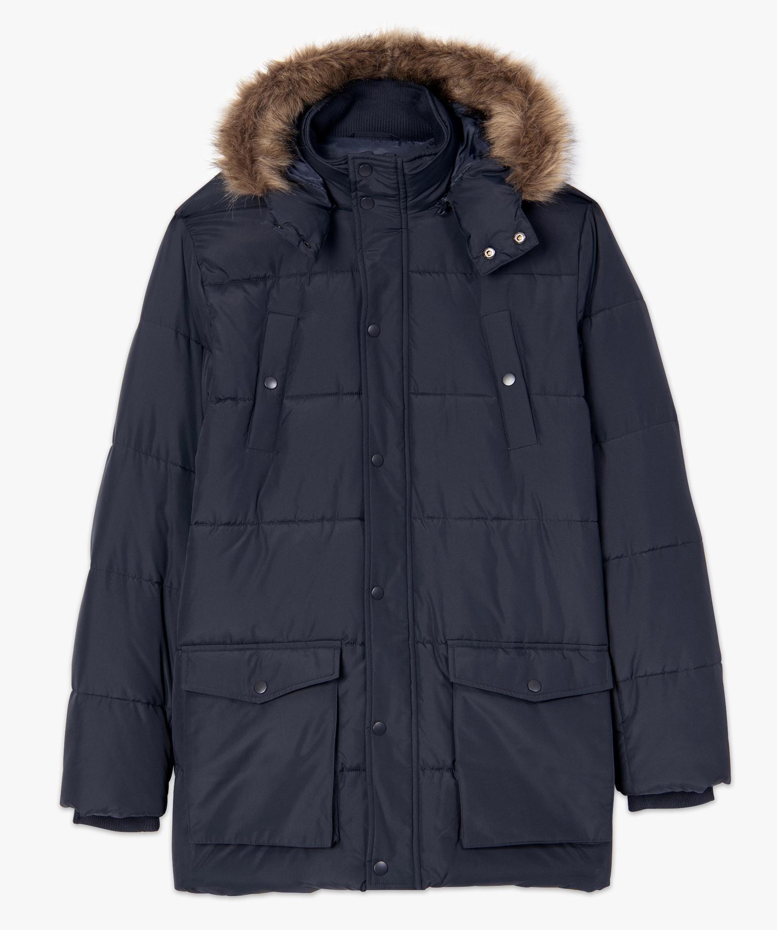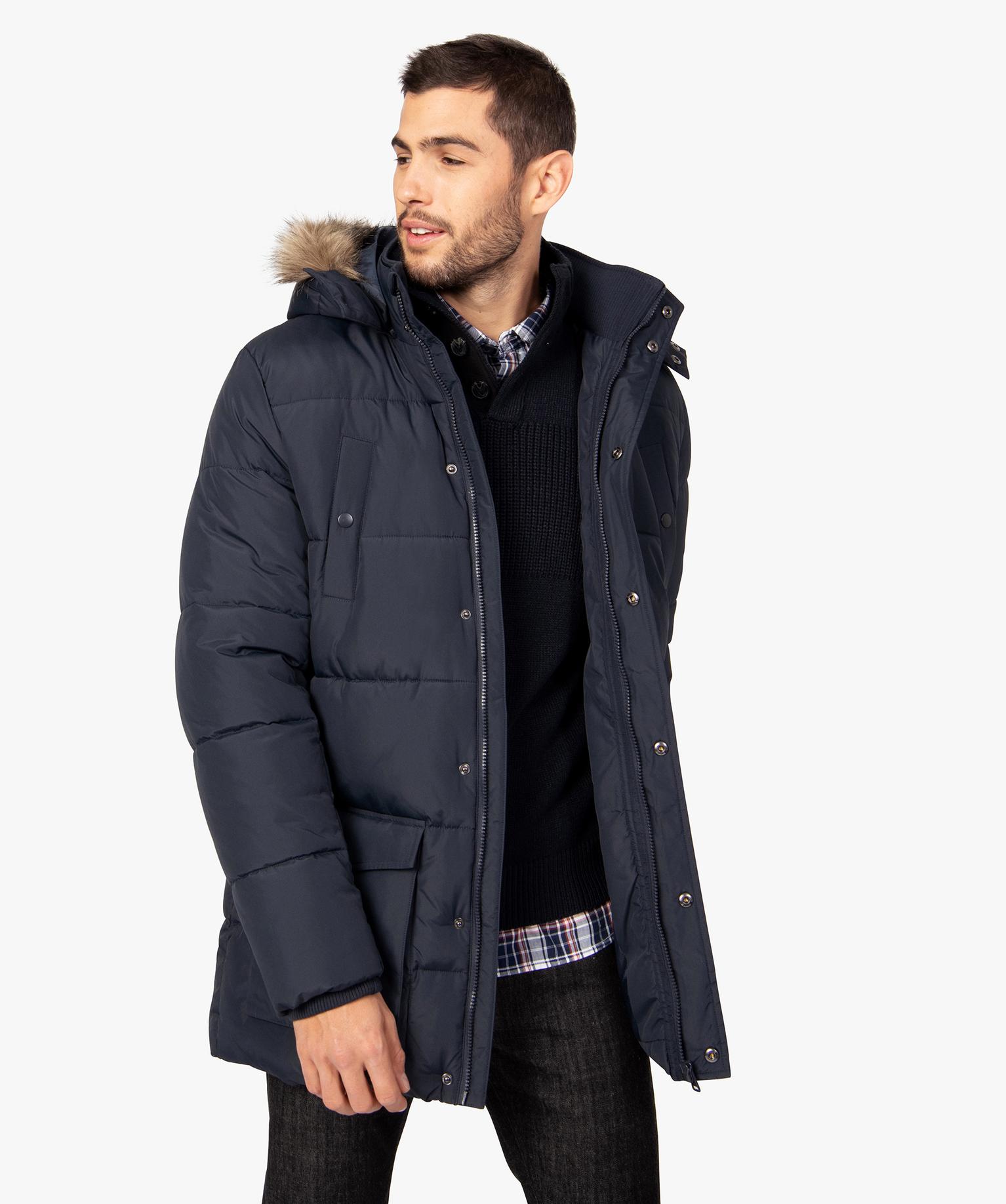 Parka homme matelassée avec capuche amovible bleu fonce