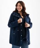 Cette chouette parka femme grande taille (du 46 au 54) est idéale pour la mi-saison. Elle possède une capuche ajustable par élastiques, 2 grandes poches plaquées à rabat et une toile légère. La parka mi-longue se ferme par un zip et une patte pressionnée. Elle possède également des boutons-pression pour fermer les poches. Cette parka à capuche est entièrement doublée. La taille est ajustable par élastique.
