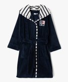 Ce peignoir LuluCastagnette enveloppera votre enfant de douceur ! Un peignoir garçon confectionné en maille peluche aussi doux à l’intérieur qu’à l’extérieur. Il est orné d’un logo inspiré du drapeau américain sur la poitrine et possède deux poches plaquées. La capuche, doublée d’un jersey rayé esprit marin, ajoute une touche de style supplémentaire. Cette robe de chambre s’enfile simplement sur un pyjama et se ferme grâce à une ceinture à nouer ton sur ton.