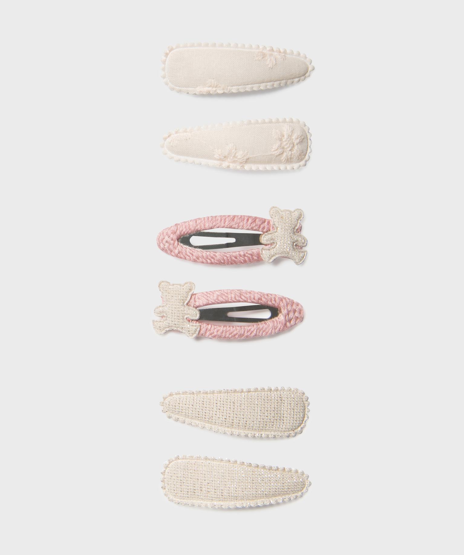 Ces jolies pinces pour les cheveux LuluCastagnette permettront de créer de jolies coiffures pour les petites princesses. Recouvertes de tissu élégant, ces pinces pour fille arborent une allure à la fois romantique et girly parfaite pour accompagner les tenues du quotidien comme les tenues de cérémonie. Ce lot de barrettes pour les cheveux se compose de 2 pinces pailletées, de 2 pinces brodées et de 2 ornées de l’iconique ourson de la marque.