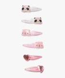 Ces 6 pinces clic-clac offrent aux petites filles la possibilité d'illuminer leur chevelure avec des paillettes et des motifs fantaisie. Parfaites pour créer de belles coiffures, ces pinces à cheveux pour fille sont faciles à positionner, idéales pour maintenir des mèches rebelles ou agrémenter une queue de cheval. Le lot comprend 2 barrettes à motif ourson, 2 avec motif panda et 2 barrettes à motif cœur.