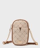 Cette élégante pochette Torrente vous accompagnera en toutes circonstances, permettant de transporter uniquement l’essentiel ! Confectionnée dans une matière texturée à motifs losanges, elle est sublimée par des passepoils en cuir imitation et des détails métalliques, signature de la marque. Fermée par un zip sur le dessus, cette pochette femme offre un seul compartiment idéal pour ranger un smartphone, et une poche sur l’avant. Elle se porte en cross-body grâce à la bandoulière en chaine et cuir imitation, ajustable en longueur à l’aide d’une boucle métallique. Une pochette de téléphone à porter aussi bien le jour que le soir.