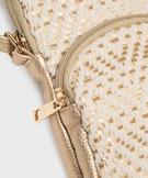 Idéale pour transporter l’essentiel au quotidien comme en soirée, la pochette à bandoulière. Ce modèle allie à la perfection une matière métallisée cuir imitation effet grainé et un joli textile tressé incrusté de fils métallisés. Cette pochette femme possède un compartiment au format idéal pour ranger un téléphone portable et une pochette sur l’avant, fermés par des zips. Elle se porte sur l’épaule ou croisée grâce à une bandoulière réglable. Un modèle à la fois chic et pratique qui ajoutera une touche d’éclat à toutes les tenues.
