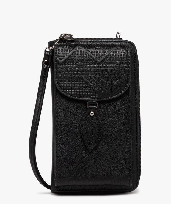 Pochette porte-feuille avec bandoulière amovible femme noir