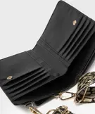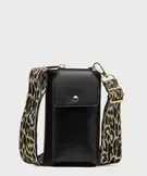 Cette pochette femme petit format est l'IT bag du moment ! Compacte, 2-en-1, elle vous permet vos essentiels à portée de main sans vous encombrer : smarpthone, cartes bancaires, papiers d'identité. Cet accessoire se porte à la main comme compagnon ou croisé sur le buste grâce à sa bandoulière amovible par mousquetons. Une large bandoulière originale, imprimée léopard et soulignée de fils dorés. À l’intérieur, un double volet propose de nombreux rangements pour cartes et billets, tandis que l’avant est équipé d’une poche à bouton -ression spécialement pensée pour accueillir votre téléphone portable.