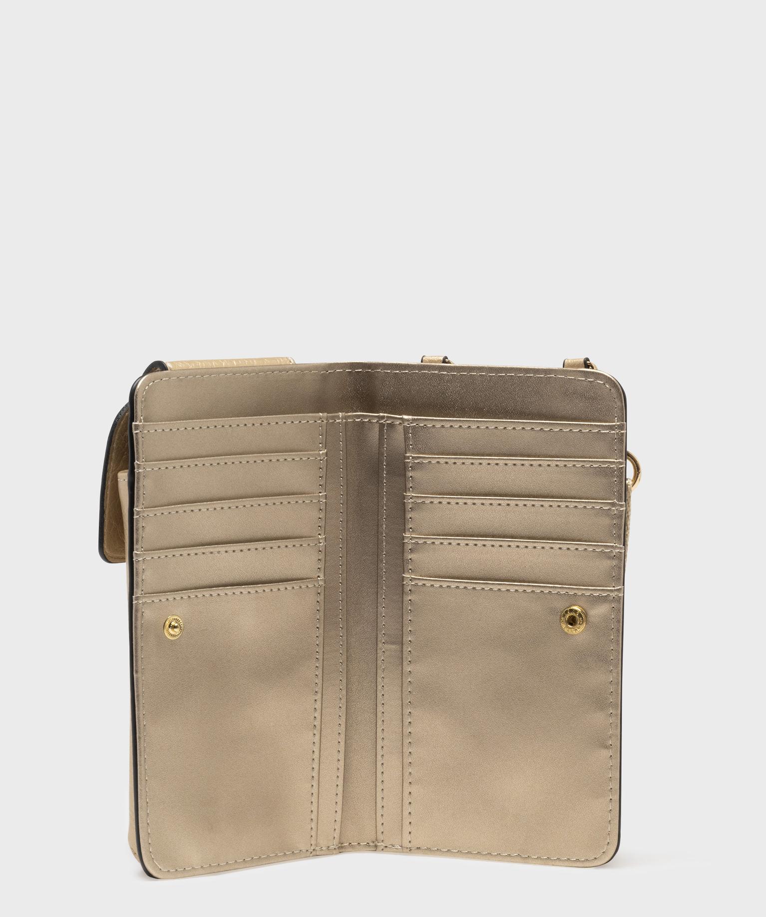 Pochette téléphone et portefeuille avec bandoulière femme or