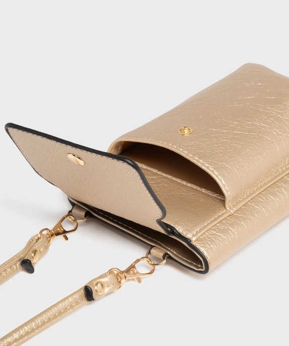 Pochette téléphone métallisée 2 en 1 femme dore