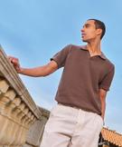 Polo à manches courtes en maille fantaisie homme marron fonce
