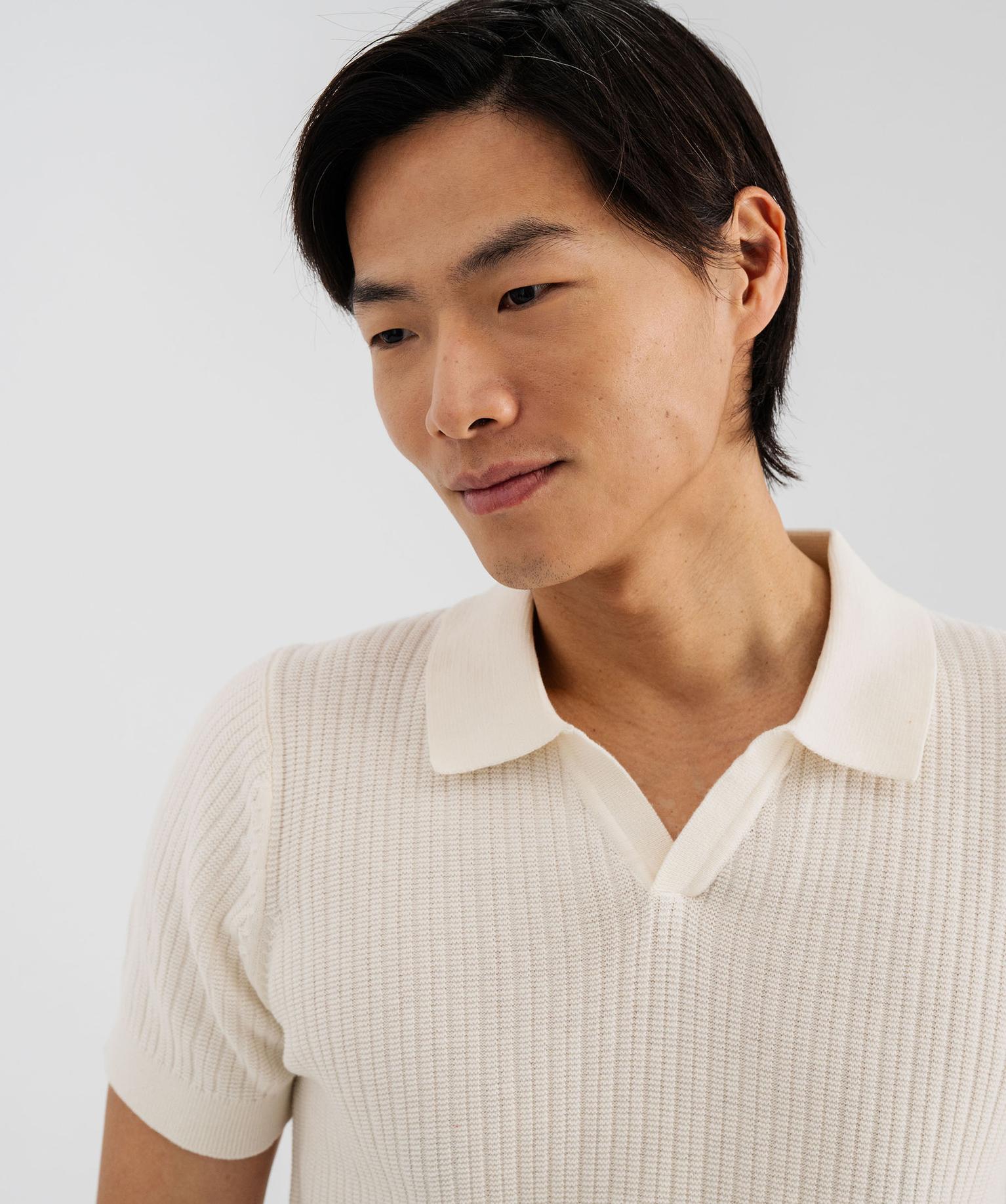 Polo à manches courtes en maille fantaisie homme ecru