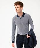 Polo à manches longues en maille piquée bicolore homme bleu marine