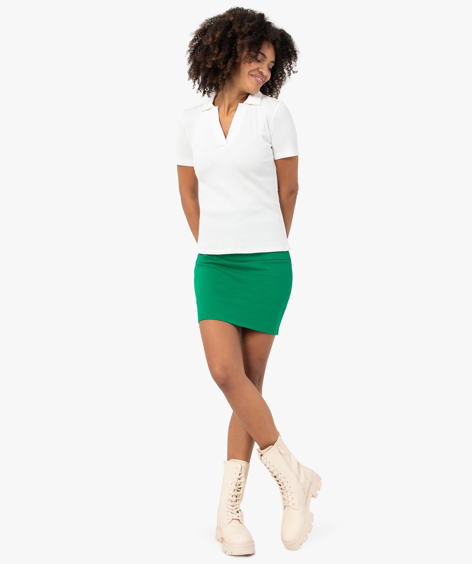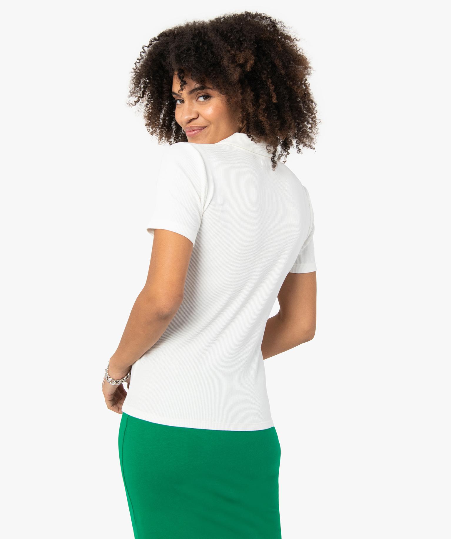 Polo femme à manches courtes en maille côtelée blanc