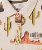 On aime ce polo qui souffle un vent d'évasion et de grands espaces dans le dressing des garçons. Ce polo garçon est confectionné dans une matière 100% coton, très agréable au quotidien. Il possède une coupe droite, un col polo classique et une patte de boutonnage à trois boutons. Pour plus d'aisance, il est doté de petites fentes sur les côtés. Un petit patch cousu sur la poitrine vient parfaire son allure. C'est l'un des hauts garçon qui sent bon les vacances !