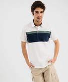Polo manches courtes à bandes colorées homme blanc