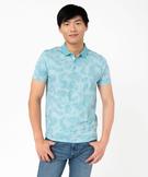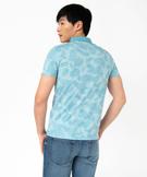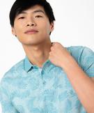 Polo manches courtes à fines rayures et motif feuillage homme bleu clair