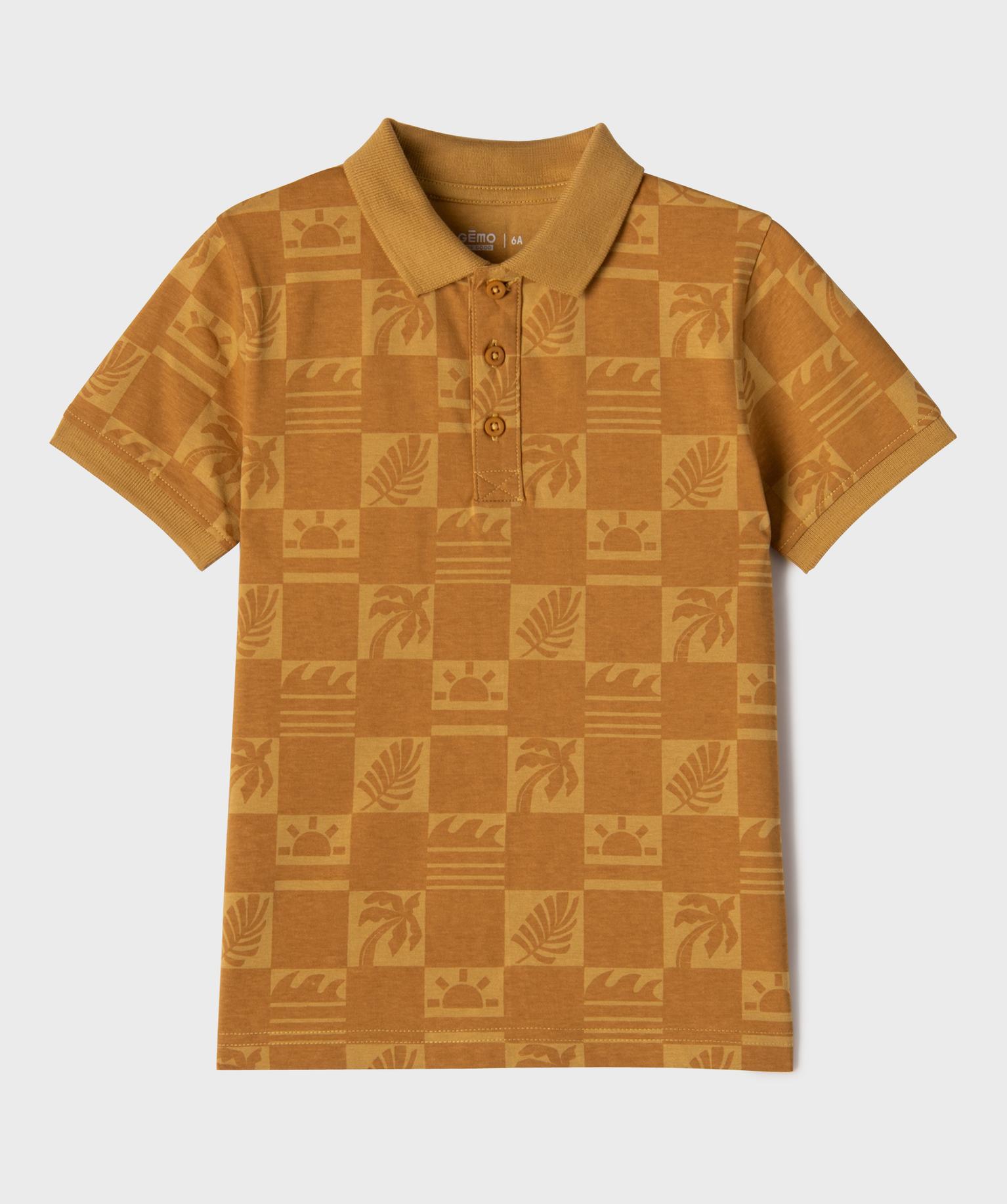 Polo manches courtes en jersey de coton motif feuillage garçon jaune