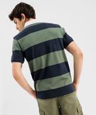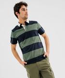Ce polo homme à manches courtes est confectionné en jersey de coton rayé ultra doux. Orné de larges bandes contrastantes, il affiche un look intemporel et dynamique. Sa coupe droite avec fentes latérales renforcées assure une silhouette confortable. Le modèle possède un col polo en toile de coton avec une boutonnière sous patte pour plus d'élégance. Idéal pour une tenue décontractée, ce polo entre aussi dans la confection de tenues casual chic avec un chino et des mocassins. Petite broderie poitrine. Finition bord-côte aux manches.