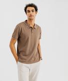 Polo manches courtes en maille piquée à micro-motifs homme beige