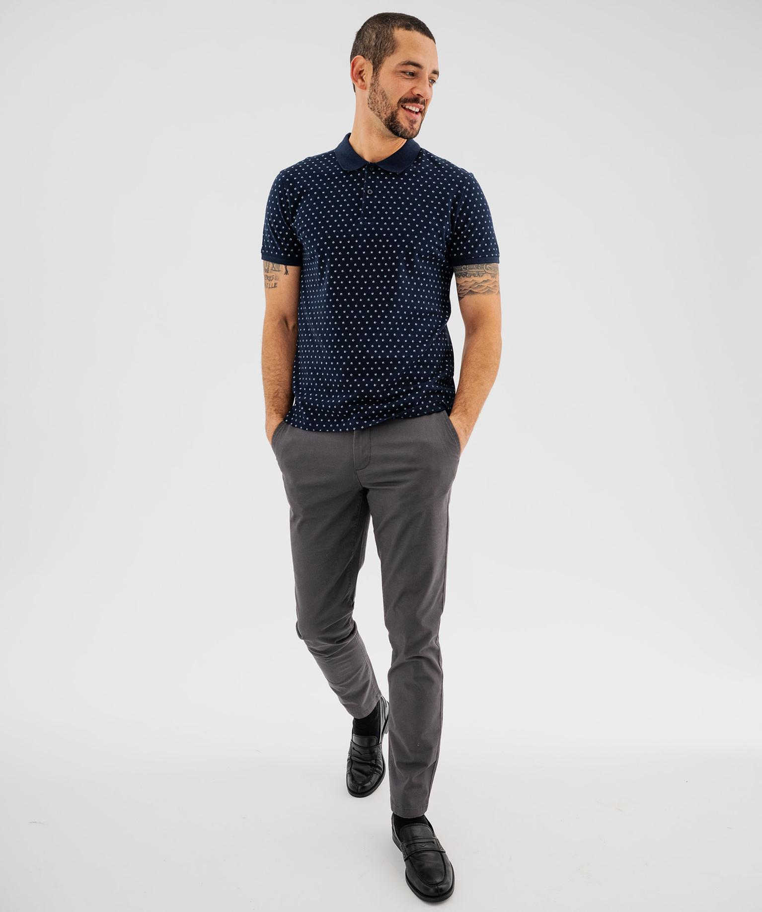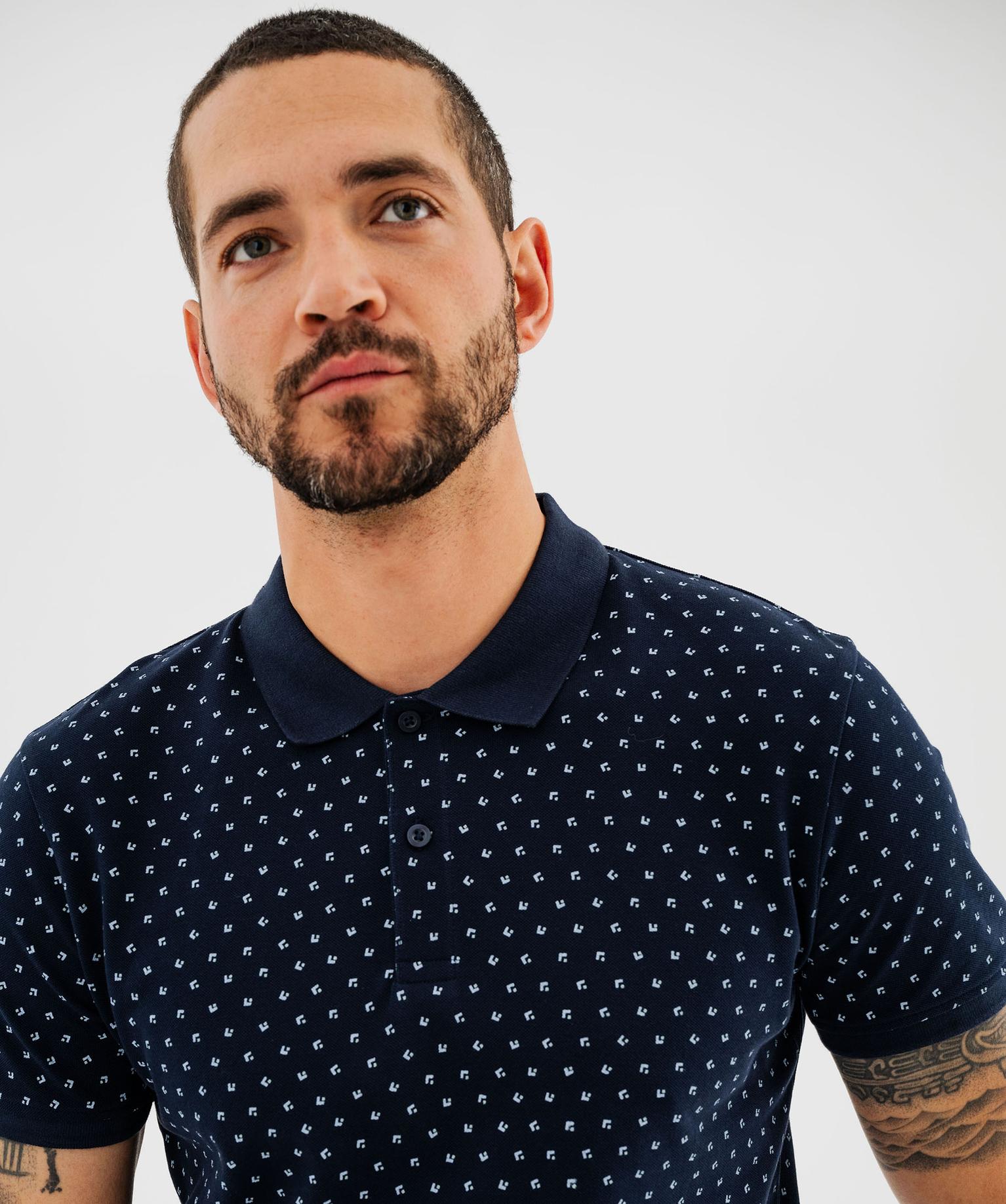 Polo manches courtes en maille piquée à micro-motifs homme marine