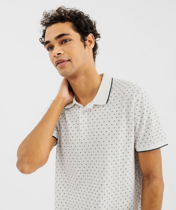 Polo manches courtes en maille piquée à micro-motifs homme blanc