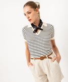 Polo rayé à manches courtes en maille côtelée femme - LuluCastagnette[MISSING] rayure