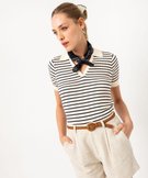 Polo rayé à manches courtes en maille côtelée femme - LuluCastagnette ecru