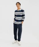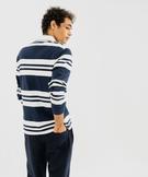 Polo rayé à manches longues avec col chemise homme bleu fonce
