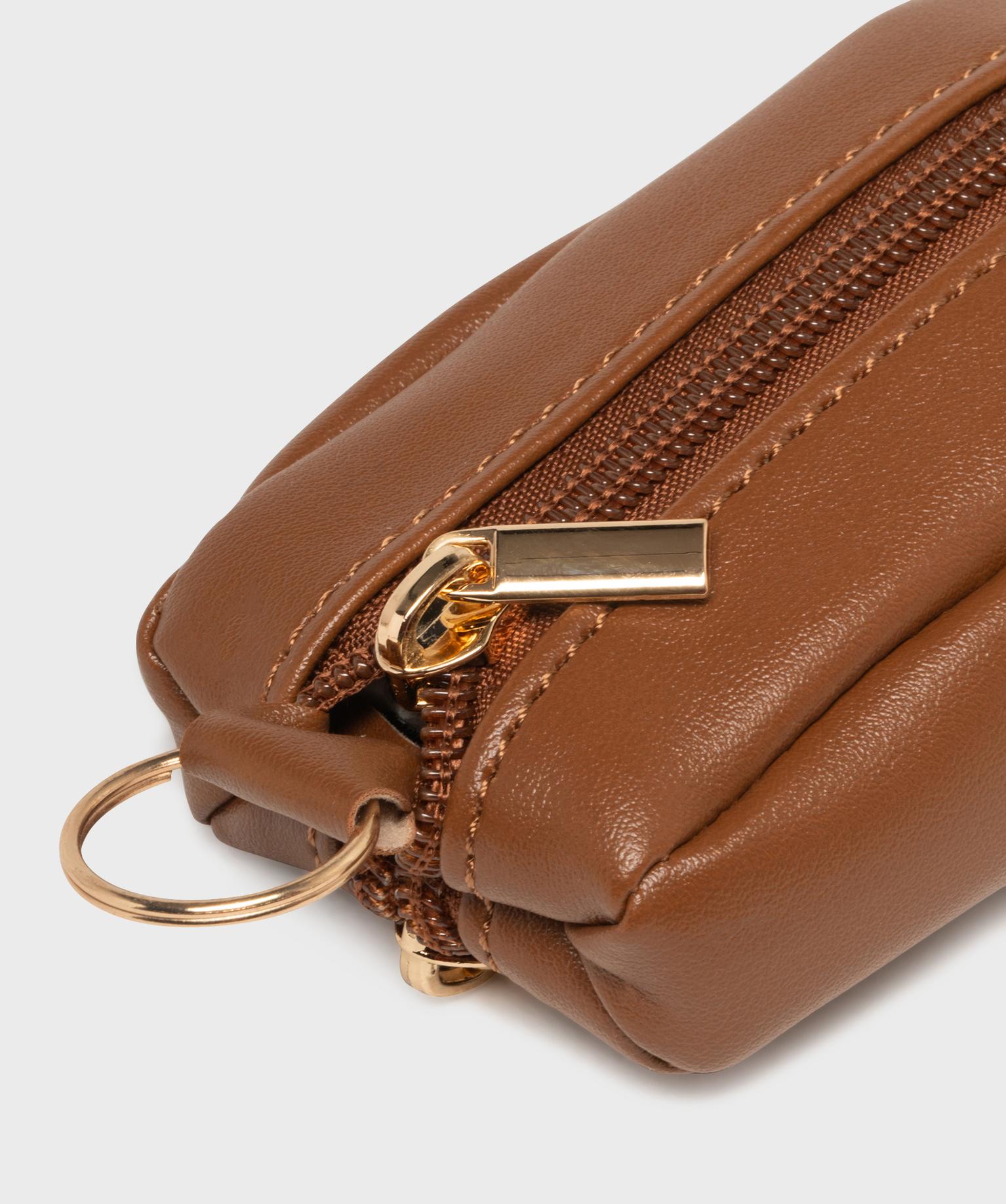 Porte-monnaie à double poche zippé femme marron