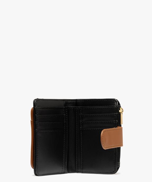 Ce petit porte-monnaie porte-cartes vous permet de transporter et d'organiser facilement votre monnaie et vos différentes cartes bancaires, de fidélité, d'identité. Compact, il se glisse facilement dans votre poche ou votre plus petit sac à main ! Le porte-monnaie pour femme zippé est se distingue par ses nombreux rangements et surtout par son porte-carte contrastant amovible. Vous apprécierez son design élégant. Ouverture 2 volets. 1 pochette zippée. 14 emplacements. Bride pressionnée pour fixer le porte-cartes amovible.