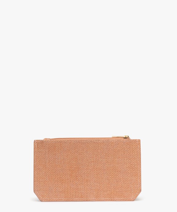 Subtilement brillant, grand mais plat, délicatement texturé : ce porte-monnaie pour femme vous séduira par sa modernité et sa féminité. L'accessoire se compose de 2 pochettes zippées cousues l'une à l'autre. De quoi rester organisée en toute simplicité.