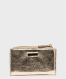 Portefeuille compact verni avec détail métallique femme dore