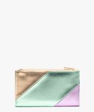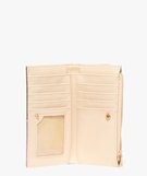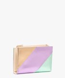 Sublime portefeuille femme au look d'inspiration vintage ! On craque complètement pour son design graphique multicolore et métallisé. Le portefeuille, de forme compacte, s'emporte facilement au creux de la main, au fond de votre sac shopping ou dans votre pochette de soirée. Ses deux volets sécurisés par un bouton pression renferment 8 porte-cartes (dont 1 transparente) et 3 poches de rangement. L'un des volets est équipé d'un zip pour contenir votre monnaie ou vos petits objets.