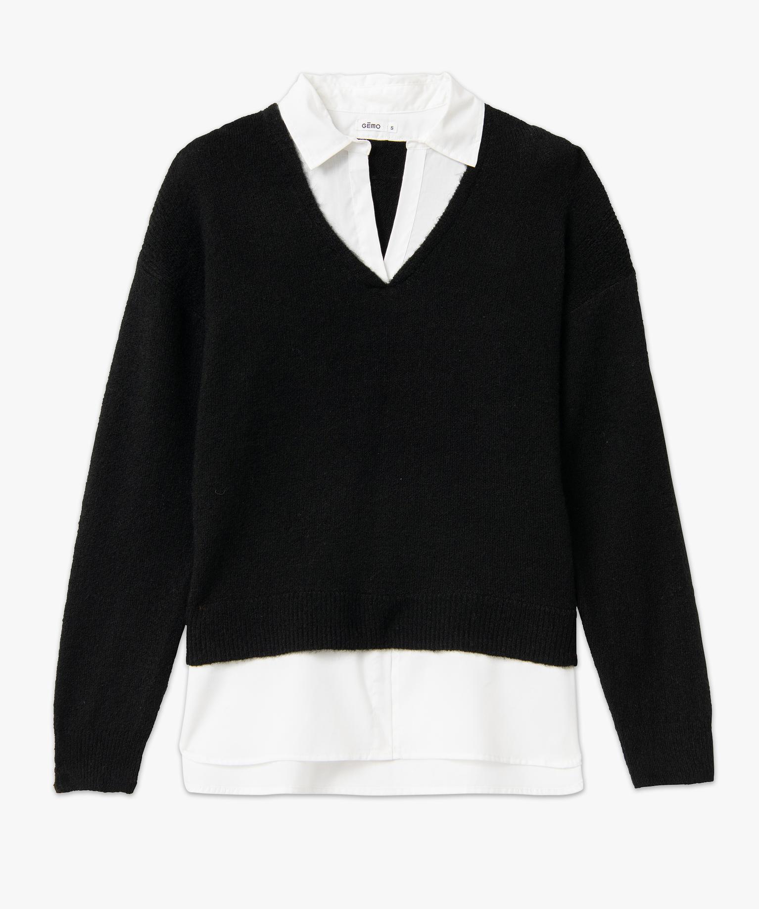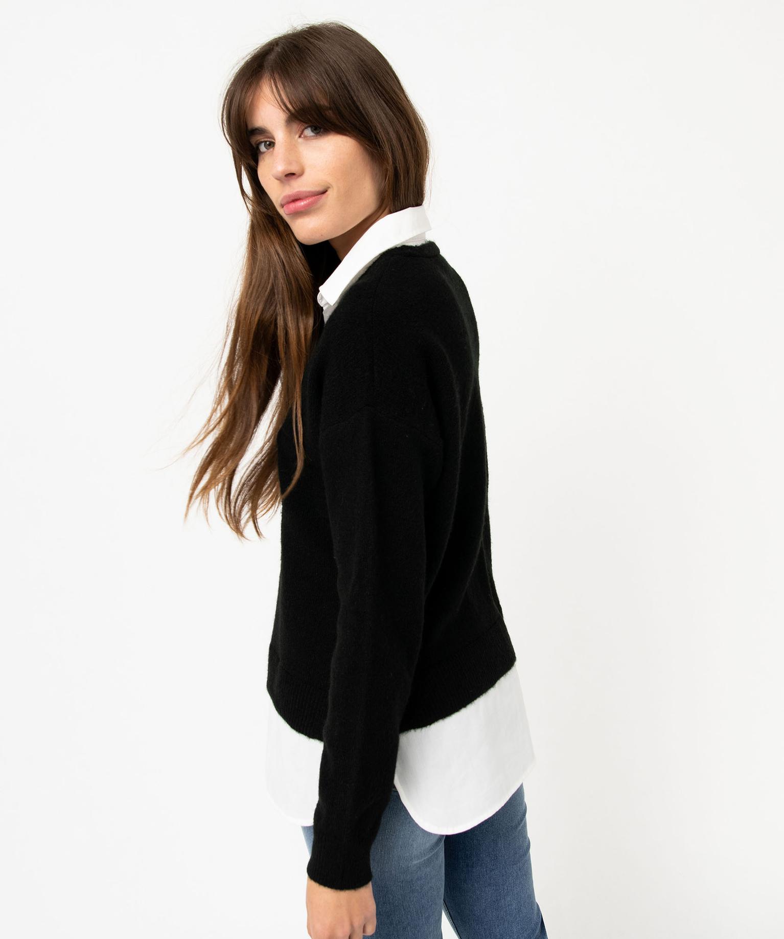 Pull 2 en 1 avec chemise femme noir